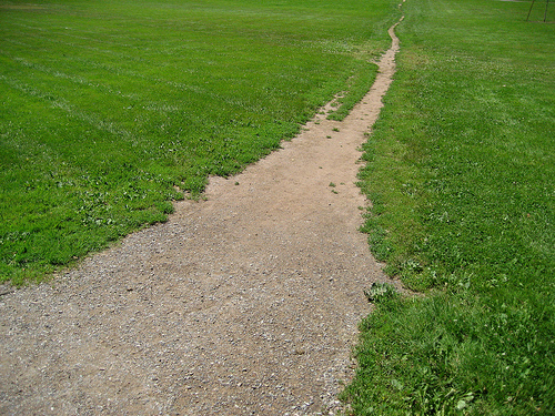 Veo banquetas, jardines, caminos, y noto la grama y los lugares donde falta.