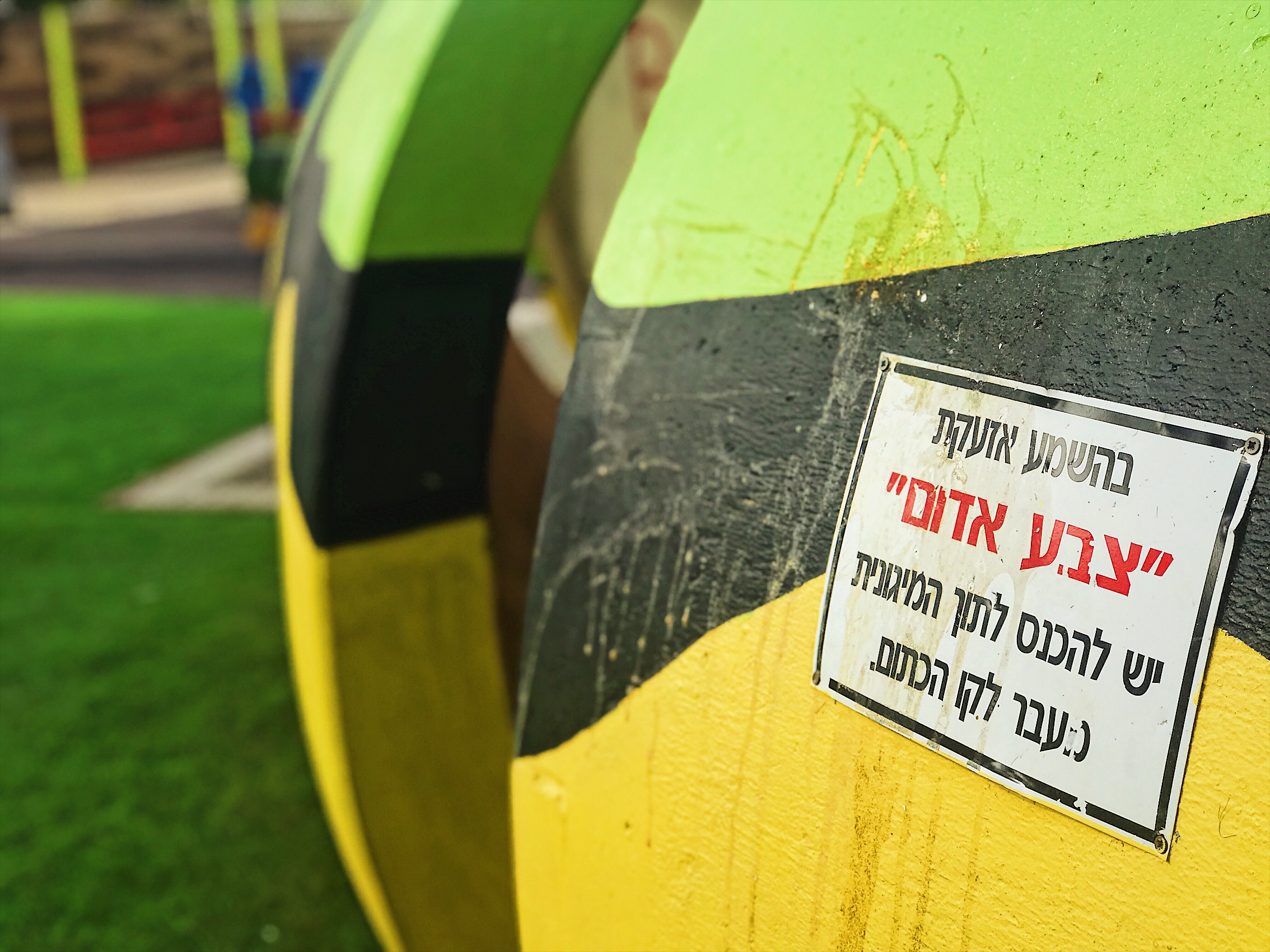 Refugio en forma de gusano en parque infantil de Sderot.