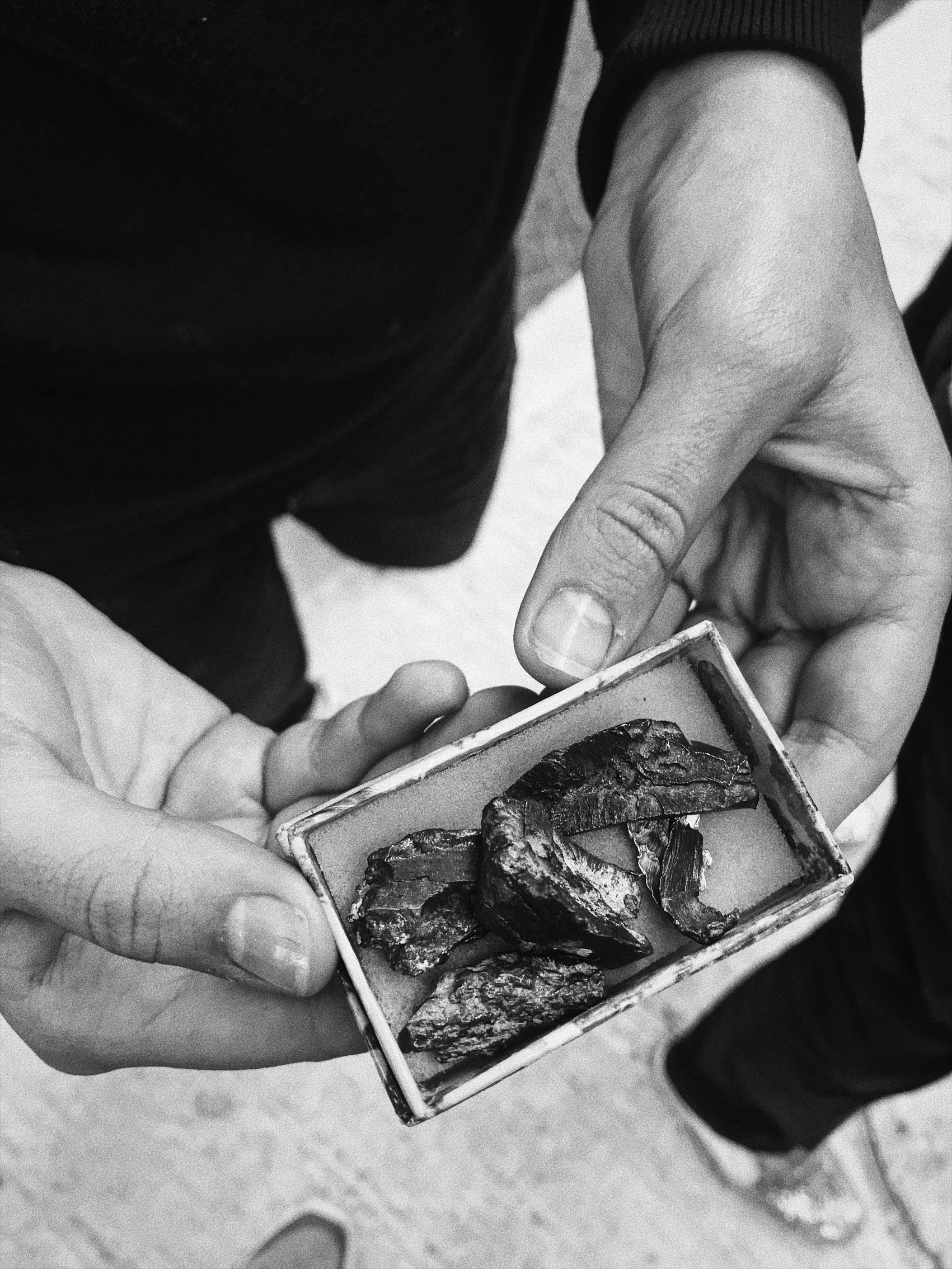 Mi hija sosteniendo restos de hierro afilado que contienen los misiles. Esto cayó en el kibbutz matando a un amigo de Chen.